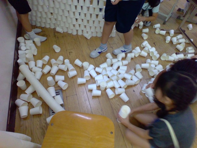 担任先生はこの日のために3000個の紙コップを用意してくれたそうです!!