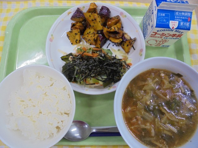 今日は、韓国料理献立給食でした。クッパは、低学年の児童にも食べやすいピリ辛味で、ご飯との相性も抜群!お代わりに多くの子が並んでいました。 また、料理名からなかなか想像ができない『マッタン』は、韓国の大学芋です。子ども達も、食缶を開けて「大学芋だー!」「韓国にも大学芋があるんだね!」と目を輝かせていました。