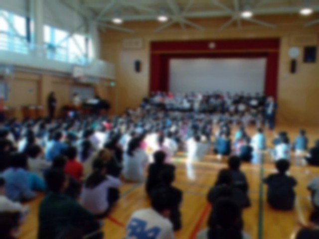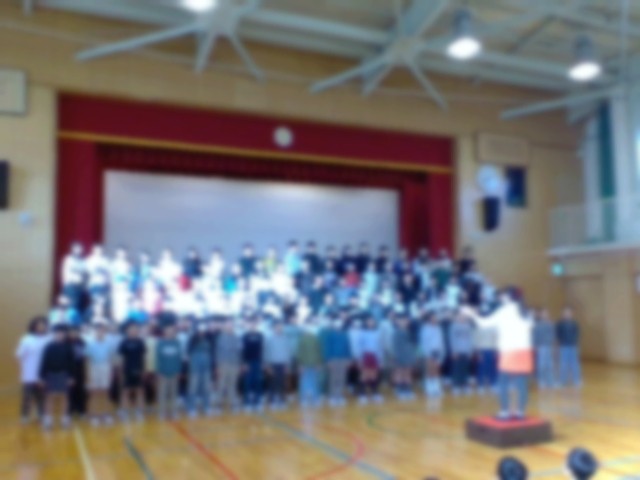 今日の朝会は、式典の呼びかけと歌を5・6年生が1〜4年生に届けました。