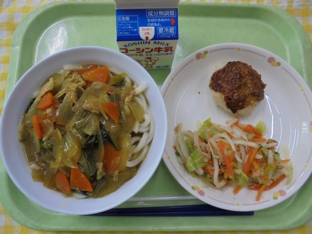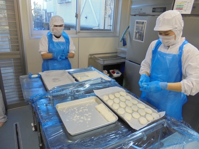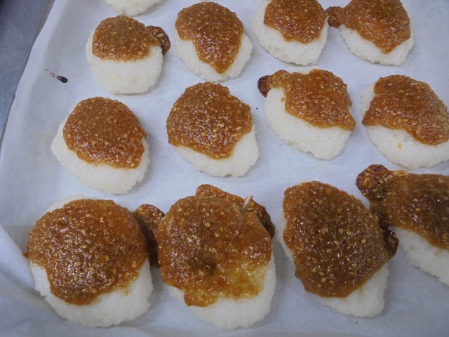 今日は、手作り五平餅を作りました。五平餅が焼きあがると、味噌の香ばしい匂いが給食室中に広がりました。子ども達は、もちもちで甘味噌味の五平餅に大喜びで、残菜もほとんどありませんでした。朝から、総出で五平餅作りに取り組んだ調理員さんたちですが、子ども達の「おいしかったです!」の声に、疲れが吹き飛んでいました。