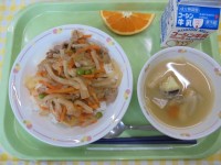 ご飯すき焼き風煮ゆかり和え茶碗蒸しせとか牛乳今日は、豊成小学校の給食では初登場の...