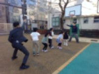 3年生の運動朝会を校庭で行いました。ボールを使って、ボール取り鬼を行いました。