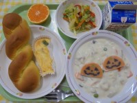 ビスキュイトースト秋の味覚シチューフレンチサラダぶどうゼリー牛乳今日は、ビスケッ...
