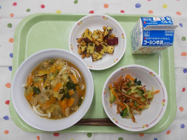 明日(11月8日)は、「いいはのひ」です。今日は、よくかんで食べるメニューを出しています。よくかんでたべると、消化を助けるだけでなく、味覚も発達します。また、脳の働きもよくなるそうです。いいことがいっぱいあるので、ぜひよくかんで食べましょう。