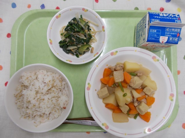 こうやどうふには、からだをつくるもととなるたんぱく質がはいっています。