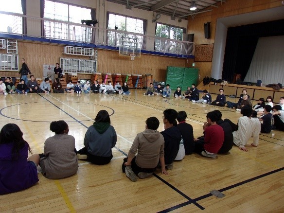 1月20日(火)の3校時には、体育館で留学生との交流会を学年合同で行いました。自己紹介をした後に、ミャンマー・ウクライナ・スペインの遊びを体験しました。ルールは違いますが、日本で遊ばれているものもありました。外国の方々と触れ合う貴重な体験となりました。