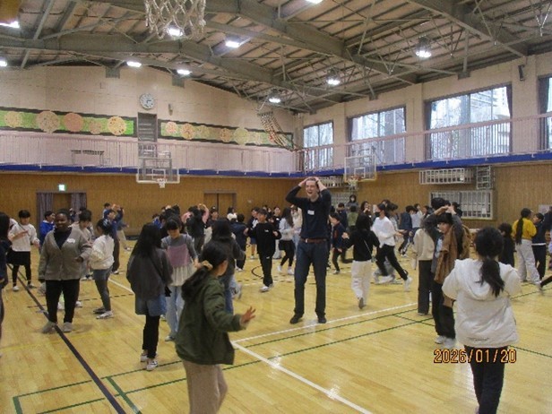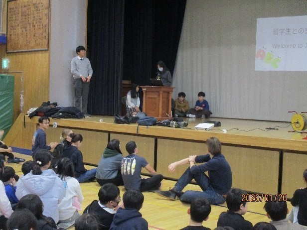 実行委員を中心に計画や準備、当日の進行を行うことができました。当日は、一人一人英語で自己紹介をし、留学生の皆さんと一緒に、進化じゃんけんやじゃんけん列車に楽しんで取り組むことができました。