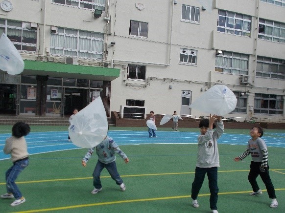 木枯らしの吹く寒い季節になりました。先日は雪も降って、寒さを実感しています。一方で子どもたちは、元気に外で遊んでいます。きせつとなかよし「ふゆ」では、身の回りのものを使って、風で遊ぶ体験をしていきます。