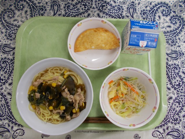 今日は、主食のリクエスト給食第1位だったしょうゆラーメンです。