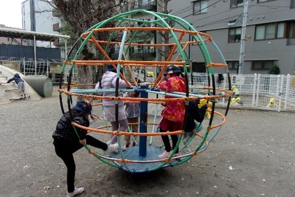 竹1,2教室は大塚台公園へ、竹3,4,5教室は巣鴨公園へ行きました。みんなで列に並んで歩くことを目標に公園まで歩き、安全に楽しく公園で遊びました。
