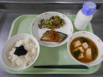 今日のおかずは秋が旬の秋刀魚です。塩焼きにして、大根おろし入りのたれをかけてあります。魚の骨を上手にとって、今だからこそおいしい旬の味覚を味わってください。