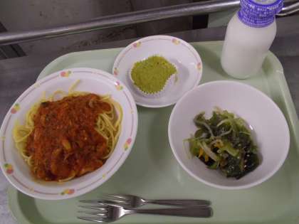 今日のデザートは明日葉の粉を使った「明日葉チーズケーキ」です。