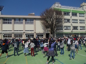 20分休みに全校で東京五輪音頭の練習をしました。子供たちは楽しそうに踊っていました。先生たちも上手でした。