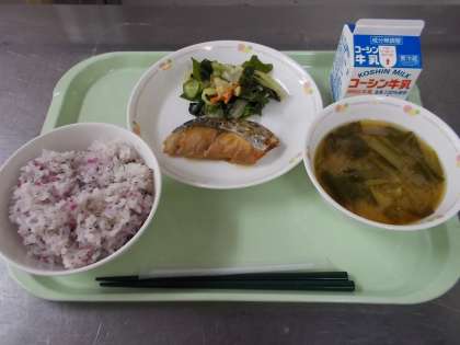 今日のおかずに出ている「鰆」は、漢字で魚へんに春と書きます。春が旬の魚なので、このような漢字になったそうです。今日のような照り焼きや、西京味噌焼き、お酢を使った酢じめにしてもおいしく食べられます。