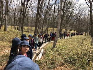 戦場ヶ原ハイキング。とっても素晴らしい天候に恵まれ、全員元気に歩いています。予定より早い様子です。