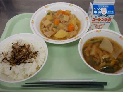 今日のふりかけは、ひじきを甘辛く味付けして、ごまを入れました。ひじきやごまには、血の巡りを良くしたり、血をつくったりするのを助けるビタミンが含まれています。