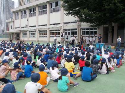 なかよし班(たてわり班)ごとに、区域をきめて、学校周辺のゴミ拾いをしました。