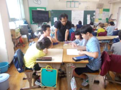 食事係、バスレク係、キャンプファイヤー係・・・と児童が主体的に活動して、林間学校を作り上げていくために、互いに話し合いながら活動を進めています。