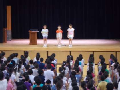 1年生の代表児童から、1学期にがんばったことの発表です。とても大きな声で、堂々と発表できました。