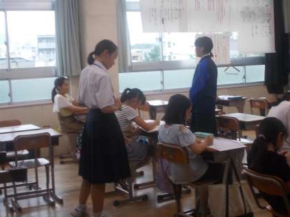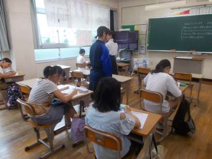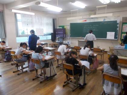 2日目の夏季学習教室の様子です。本校を卒業した西巣鴨中学校の生徒がお手伝いに来ています。小学校の子供たちはしっかり学習に取り組んでいます。
