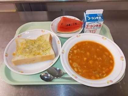 夏に給食でよく食べる果物の一つに、「すいか」があります。すいかは水分やミネラルがたっぷり含まれているので、汗をかいた後の水分補給にも、ぴったりな食べ物です。おいしく食べて、元気な体をつくりましょう。