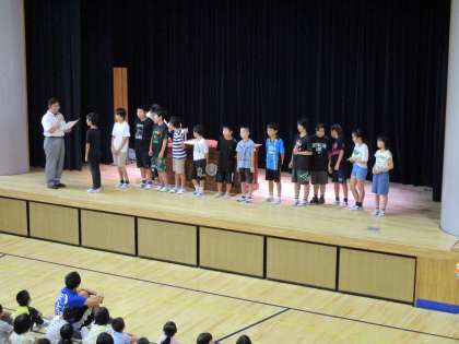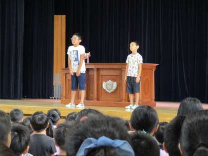 始業式では、4年生による児童代表の言葉や転入生の紹介、表彰などが行われました。