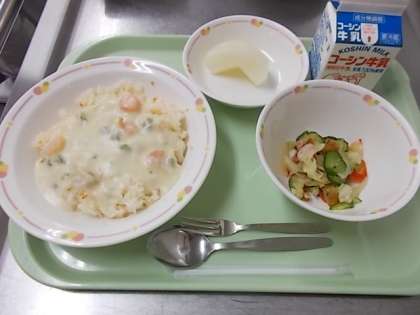 今日のデザートは秋が旬の梨です。みずみずしく、食感がしゃりしゃりして、食後にさっぱりと食べられます。実は日本で古くから育てられている果物の一つで、弥生時代にはすでに食べられていたそうです。