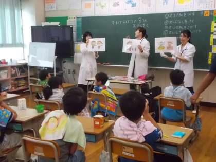 歯科校医の先生と歯科衛生士から歯みがき指導をしていただきました。