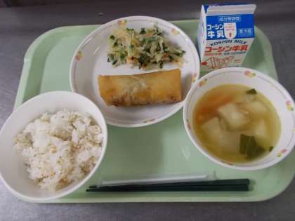 給食で7月に冬瓜を食べたことを覚えていますか?今日のスープに入っている大根のような半透明の野菜で、夏に旬を迎えます。夏が旬ですが、冬まで保存して食べることができる瓜なので、「冬」の「瓜」と書いて冬瓜という名前になりました。