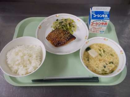 はえぬき、ミルキークイーン、つや姫、ふっくりんこ、ササニシキなど、今年度もいろいろなお米を味わってきました。今日は11月に登場し、みなさんが特によく食べてくれた、岩手県産「ひとめぼれ」をもう一度出します。やわらかく、さっぱりとしたおいしさをよく味わってください。