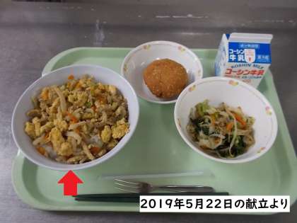 ※給食では彩りに絹さや、万能ねぎ等入れています。