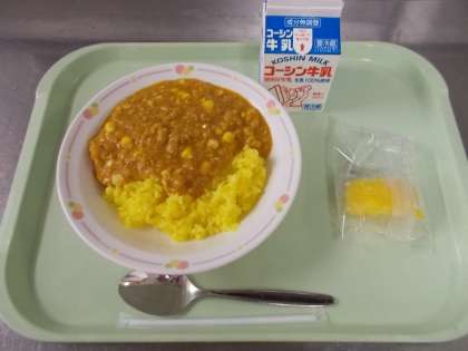 今日のキーマカレーには、とうもろこしが入っています。