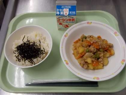 今日の給食に出てきた「キムムッチ」は、ピリ辛味の韓国風のりふりかけです。のりをごま油で炒め、にんにく、砂糖、しょうゆ、ごま、そしてほんの少しの唐辛子で味付けした
