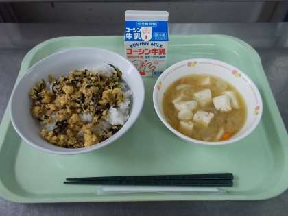 今日の汁物は、さつまいもが入ったさつま汁です。さつまいもには肌を丈夫にして風邪を防ぐビタミンC、お腹の中をきれいにしてくれる食物繊維が多く含まれています。