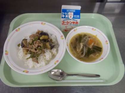 今日のみそ炒めには、夏野菜のなすとピーマンが入っています。夏野菜は、食べると体の熱を外に逃がしてくれる働きがあります。まだまだ暑い日が続きますが、しっかり食べて、元気に乗り切りましょう。