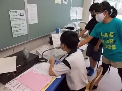 先週の給食の時間からお昼の放送が始まりました。自分たちでコメントを考え、毎日放送をしています。