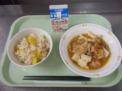 9月のブックメニューは、いろいろなごはんがでてくる「ごはん」という絵本の中から「さつまいもごはん」です。旬のさつまいもを一緒に炊いたさつまいもごはん、秋らしいごはんを味わってみてください。