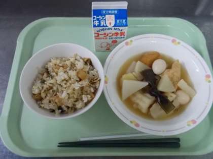 今日はごはんにも、おでんにも、大根が入った大根尽くしの献立です。使っている大根もいつもと違います。東京都で作られている「大蔵大根」という、重くて真っ白な、煮物にするととてもおいしい大根です。新鮮なので葉っぱもおいしく食べられます。今日は刻んでごはんに入れました。