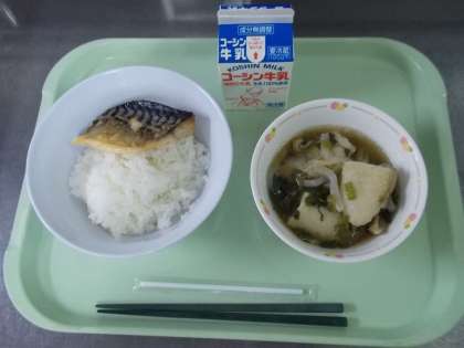 今日のごはんは秋田県産の「あきたこまち」というお米です。ツヤと香りが良く、よく噛むと甘みや旨味が感じやすいお米です。汁物は秋田の郷土料理「きりたんぽ汁」です。和食には海藻や魚の出汁だけではなく、今日のように肉から出汁をとる料理もあります。