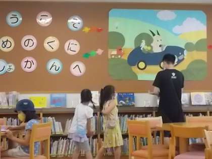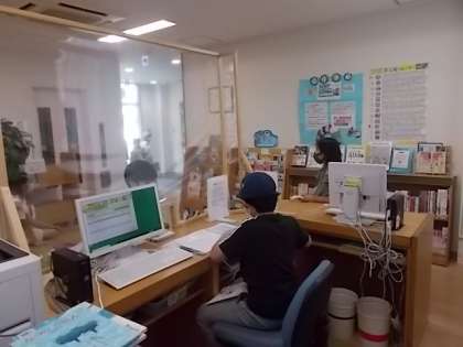 図書委員会の児童が本の貸出や返却のお手伝いをしています。