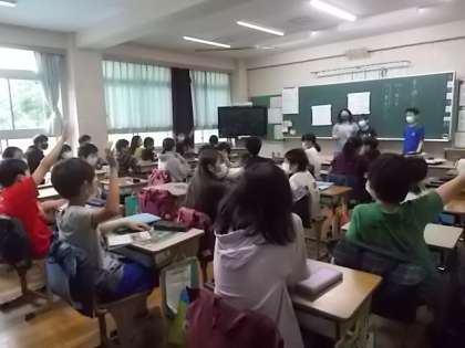 全校みんなで体育館に集まる機会が作れない状況が続いています。そんな中、集会委員会の児童たちが、朝の時間に各クラスを回ってクイズ大会を行ってくれています。これは6年生のクラスの様子です。明日は3年、4年、竹の子クラスにいきます。楽しみにしていてください。