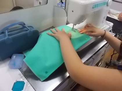 ポケットを縫い付けていました。みんな一生懸命です。