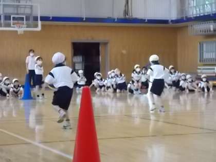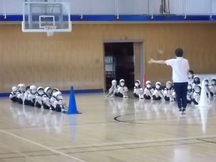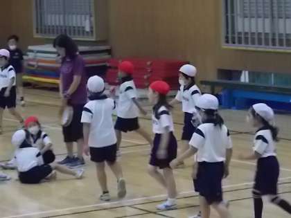 リングをバトンにして - 1年生 公開日 2021/06/25 更新日 2021/06/25 1年生 1年生が楽しみにしていた水泳指導でしたが、気温・水温ともに低く、また突然の雨のため中止となりました。なので、各クラスが交代で体育館で体を動かしました。リングをバトン替わりに使ってリレーをしている様子です。きちんと整列をして、ルールを守ってスタートできます。「がんばれー」という気持ちのいい声援もあり、盛り上がっていました。 いいね(0)