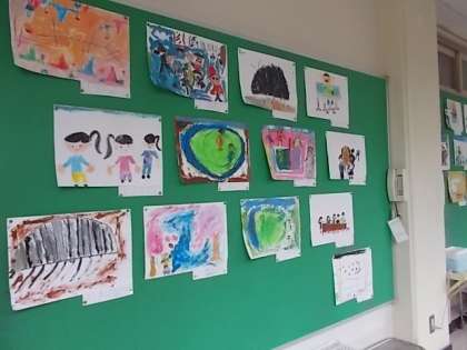 今までで一番楽しかったこと、ドキドキしたことを描きました。みんなの思い出の場面が並んでいるので、タイトルをみているとうれしい気持ちになります。