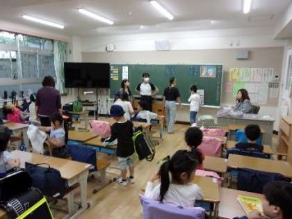 6年生は、グループで交代しながら1年生のお手伝いをしています。朝の支度を手伝ったり、休み時間には教室や外で一緒に遊んだりしています。放課後には担当教室に行き、掃除をしています。大変なこともあるようですが、最高学年として懸命に頑張っています。