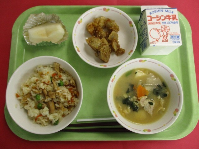 今日の給食は、里芋を油でカリっと揚げて、甘いタレを絡めた「里芋の揚げ煮」を作りました。里芋のぬめりには、免疫力を高めてくれる働きがあります。朝晩寒い日が続き、体調を崩しやすい季節になりました。しっかり食べて、免疫力を高め、病気に負けない強い体を作りましょう。