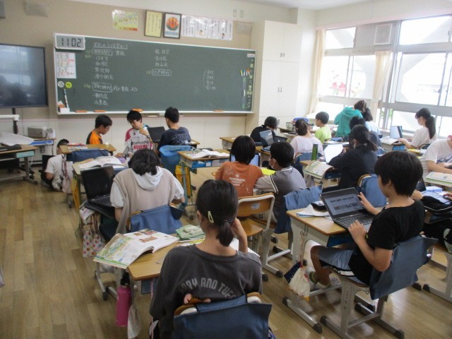 10月7日(火)、6年生の教室では、社会科の学習でタブレットを活用して、調べ学習を展開していました。