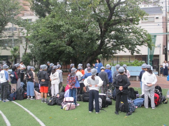 校庭で出発式をしました。「みんなが楽しめる移動教室にしよう」