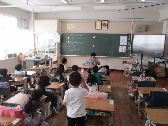 10月10日(金)、1年生の教室では、算数の学習をしています。