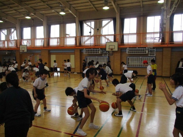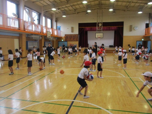 バスケットボールの基礎的なスキル、体の動かし方等をご指導いただきました。1年生から6年生までご指導